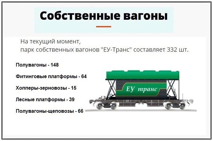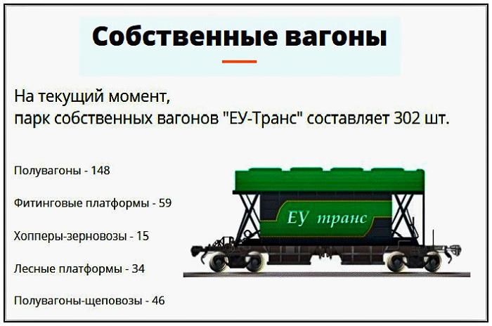 Парк собственных вагонов "ЕУ-Транс" составляет 302 шт.